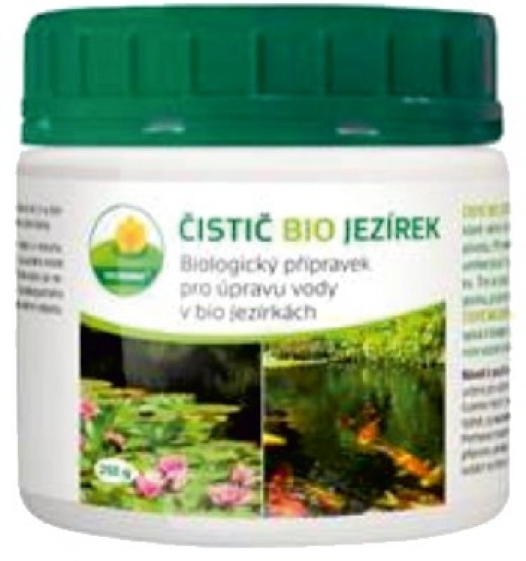 Přípravek snižuje obsah živin pro růst řas, po jejich odumření slouží řasy jako potrava pro bakterie obsažené v přípravku. Tím se snižuje obsah usazenin organického původu na dně jezírka, projasňuje se voda a nastavuje se biologická rovnováha. ČISTIČ BIO JEZÍREK je unikatní přípravek, jehož každá složka příspívá k biodegradačnímu procesu. Je neškodný vůči rybám a jiným vodním živočichům, je šetrný k životnímu prostředí.