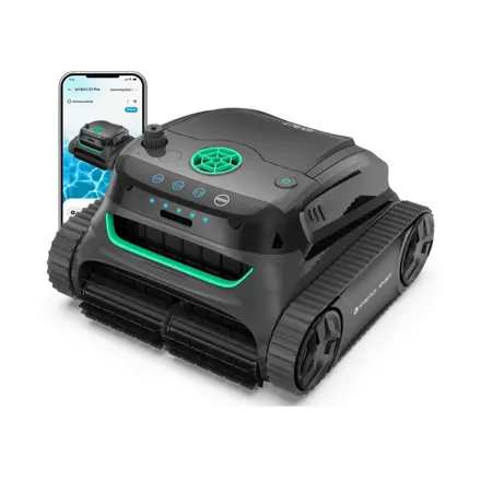 Ovládání a funkce: Aktivace čistícího cyklu se provádí jedním tlačítkem. Zařízení disponuje funkcí automatického zaparkování při okraji bazénu při nízkém stavu baterie nebo po ukončení cyklu pro snazší vyjmutí z vody. Stav baterie je indikován LED diodou.